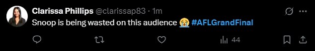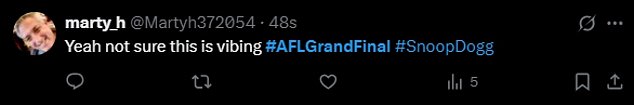 “Nisam obožavatelj AFL Grand Final Entertainment”, napisao je jedan. ‘Snoop pas (sic) je užasan izbor.