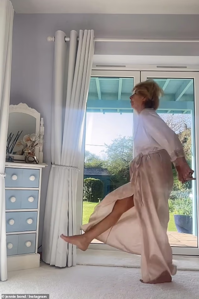Jennie Bond (75) hvale zbog svoje ‘radosti, energije i sjajnih nogu’ dok je plesala u svom svilenom ogrtaču kako bi se riješila ‘bolova’ u zabavnom videu objavljenom na Instagramu