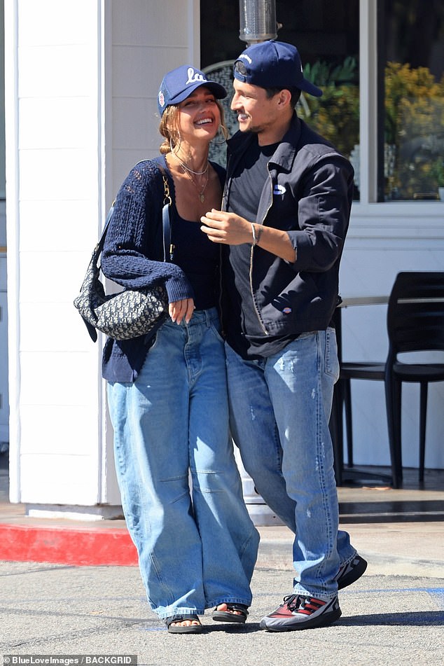 44-godišnja glumica i 32-godišnja porijeklom iz Chicaga podudarali su se u odjeći kao što su obojica imali na tamnoplavim vrhovima s blijedo plavim trapericama i kapetama Dodgera.