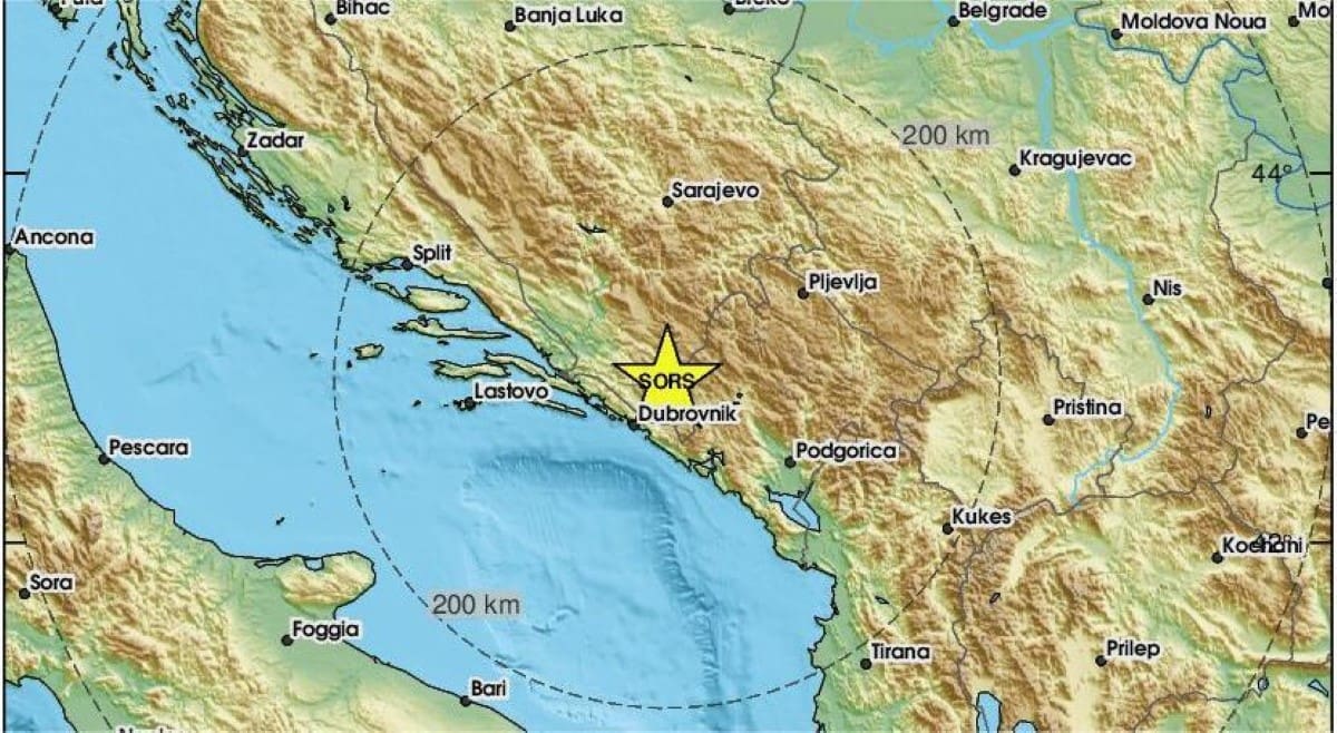 Danas u 14 sati i 8 minuta po lokalnom vremenu zabilježen je potres s epicentrom 65 km jugoistočno od Mostara, odnosno 20 km sjeverozapadno od Trebinja, na području Bosne i Hercegovine.