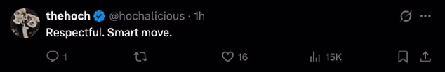 ‘S poštovanjem. Pametan potez’, napisao je jedan obožavatelj u komentarima.