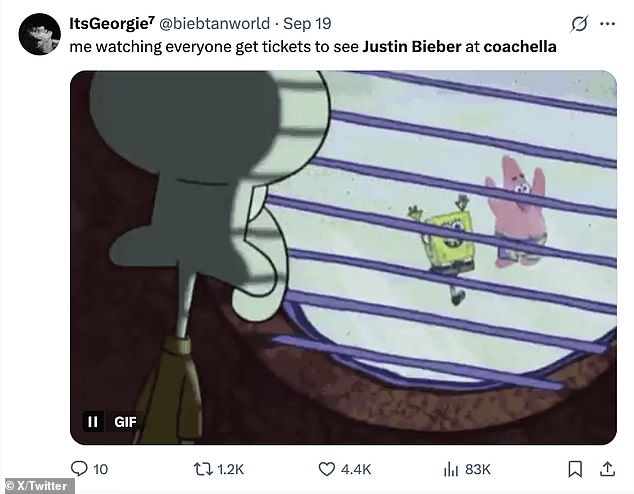 Jedan obožavatelj podijelio je spongebob meme kako bi ilustrirao kako su htjeli otići na festival koji se traži nakon što je čuo za Bieber.
