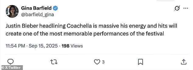 Drugi je dodao: “Justin Bieber Headlining Coachella je masivna njegova energija i hitovi će stvoriti jedan od najupečatljivijih nastupa festivala.”
