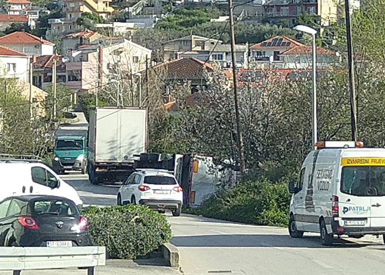 Na istoku Splita, na izrazito prometnoj ulici, u jutarnjim satima petka dogodila se nesreća u kojoj se šleper prevrnuo.