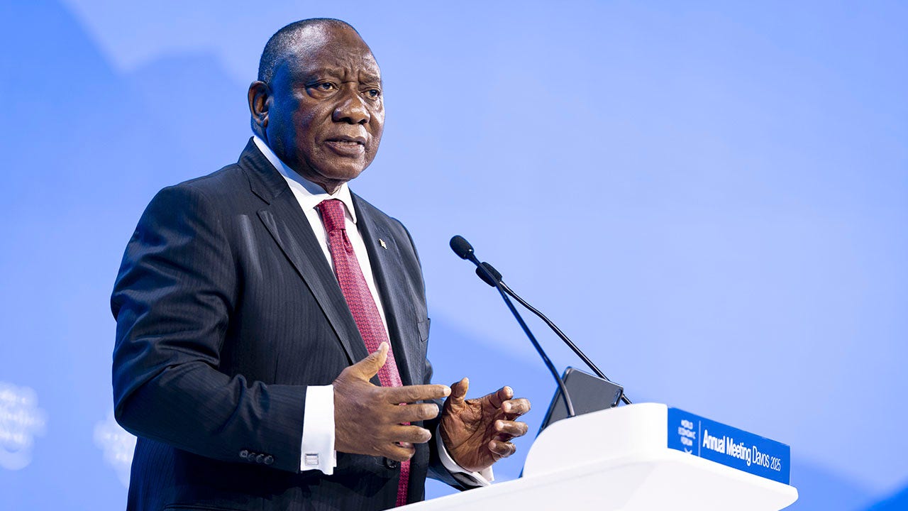 Cyril Ramaphosa, predsjednik Južne Afrike, drži govor tijekom plenarne sjednice u Kongresnoj dvorani tijekom 55. godišnjeg sastanka Svjetskog ekonomskog foruma u Davosu, Švicarska, 21. siječnja 2025. (Michael Buholzer/Keystone putem AP-a)