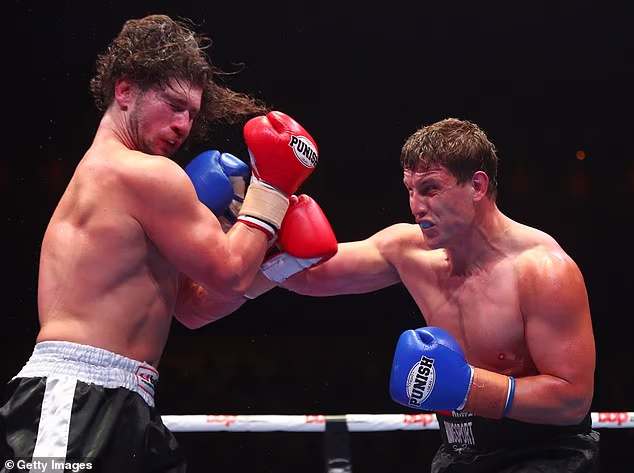 Zvijezda NRL-a koji je postao boksač u teškoj kategoriji Jarrod Wallace ima zahvaliti svojoj supruzi nakon što mu je poštena ‘sprej’ supruga Shannon vratila život na pravi put (na slici desno, borba s Nickom Timmsom)