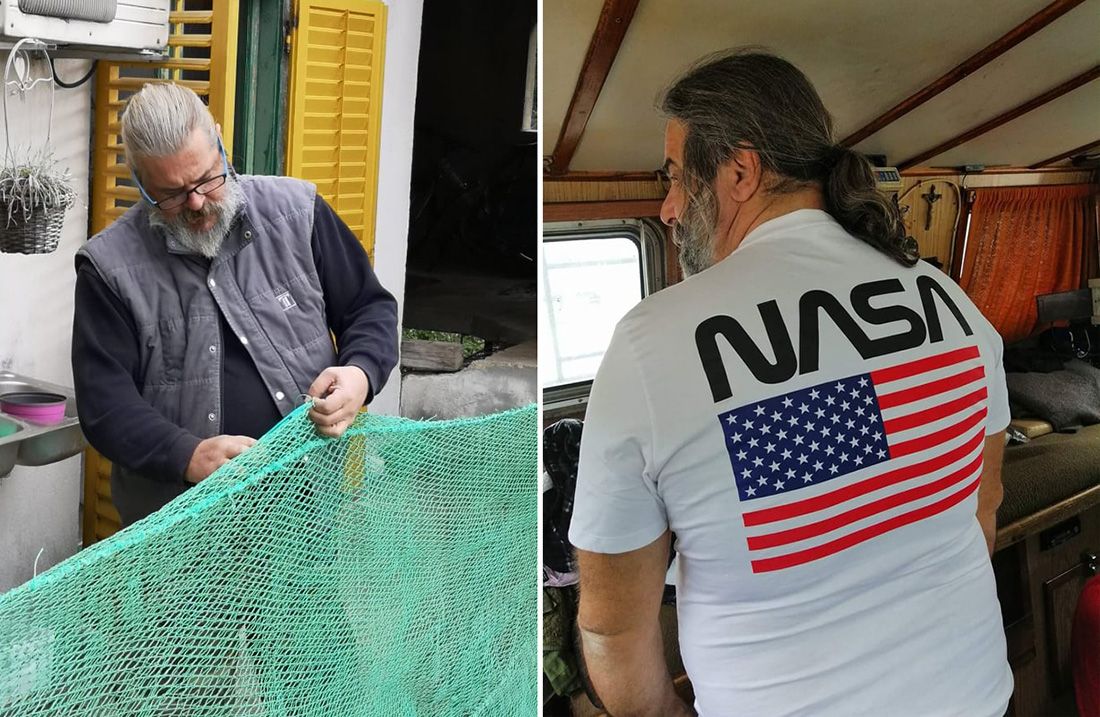 Proslavljeni hrvatski ribar ne prestaje se sprdati s Amerikancima. Popravio je mrežu, a u ribolov ide s majicom na kojoj je američka zastava i natpis “NASA”.