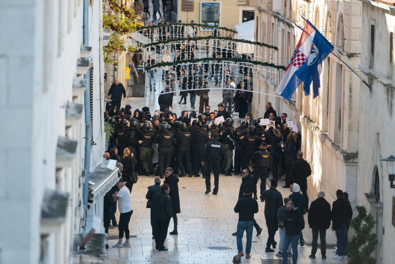A atmosfera je Dalmatinski marš i grupica kontra prosvjednika na Trgu. Četrnaestogodišnjak čija se mama zabrinula za njegov i svoj ugled u medijima bio je dio skupine od dvadesetak agresivnih navijača koje je interventna policija lako stavila pod kontrolu. Među njima je bilo i javnosti poznatih osuđivanih kriminalaca, narkomana i nasilnika, punoljetnih, naravno. Ostali promatrači kolone na Trgu bili su zatečeni građani (većina, poglavito majke s djecom, panično se razbježala s terasa kafića kad je počelo naguravanja navijača s policijom), nekolicina novinara i kontraša. Njih sve skupa maksimalno trideset, četrdeset. Neki su telefonima samo snimali atmosferu, a neki su bili aktivni zviždeći, vrijeđajući i psujući prosvjednike. Primijetio sam da su najgrlatiji i najzapjenjeniji među njima bili neke poznate gradske vucibatine, luzeri i propalice, potonuli u ovisnost, ocvali profesionalni navijači, od kojih neki imaju horde sljedbenika na društvenim mrežama. Influenseri mržnje i promotori ignorancije, odnosno slobode i domoljublja, kako oni to misle. Kojima je, za njihove mizerne živote, uvijek kriv netko drugi, a u nedjelju je to bila kolona prosvjednika protiv fašizma.
