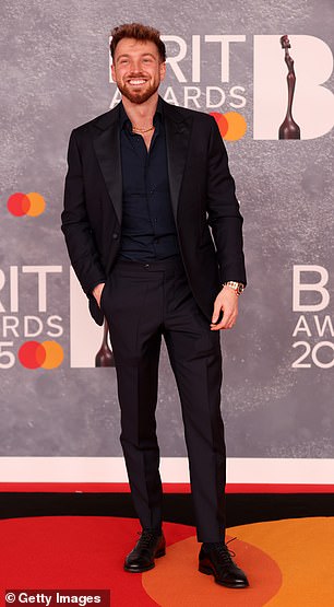 Sam je bio prikladan i pokrenut u crnoj tuxedu koji je složio preko elegantne mornarske košulje i pozirao za solo fotografije prije nego što joj se pridružila njegova sestra Louise Thompson.
