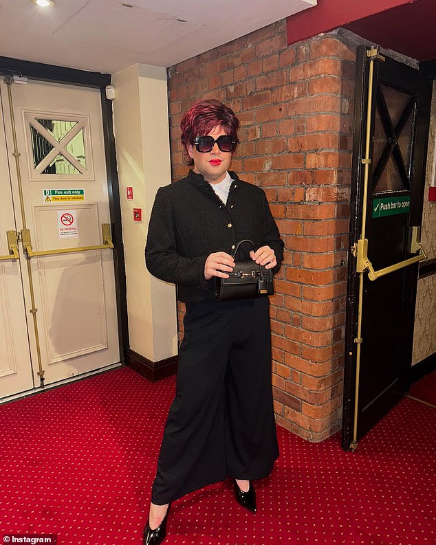 Ostavio je obožavatelje u šavovima dok je dijelio fotografije sebe kako bave bijelom košuljom i crnom jaknom od tvida, nošenom s maksimalnom suknjom dok je kanalizirao Sharon (desno)