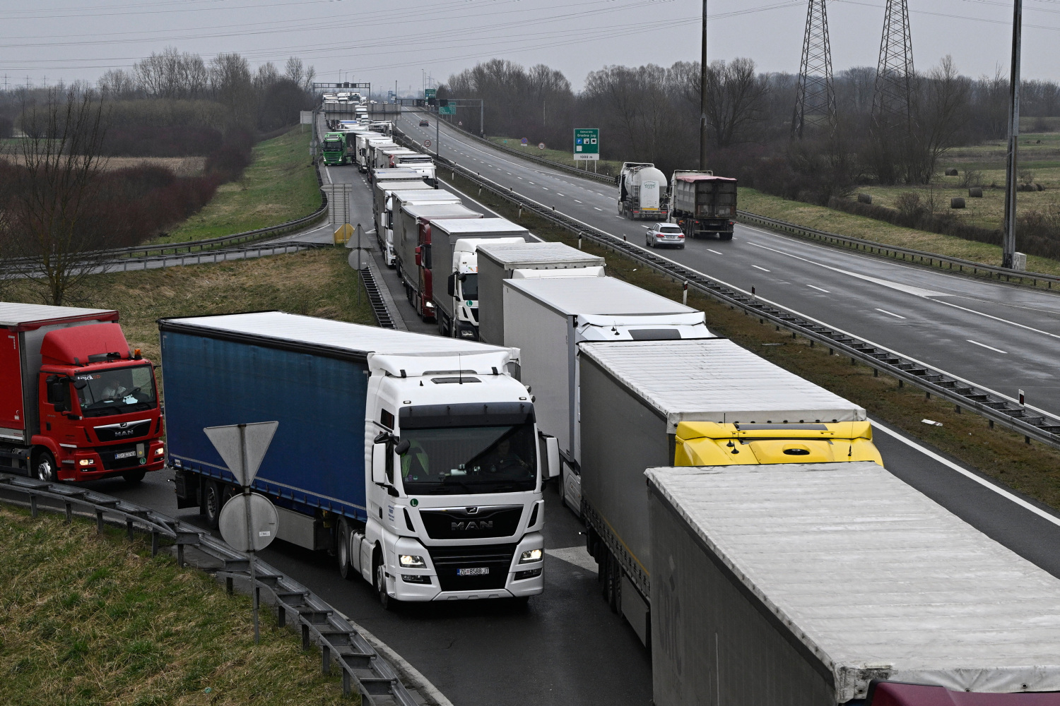 ‘Kolona teretnih vozila na autocesti A3 pred naplatom Bregana u smjeru GP Bregana je oko 7 km. Vozi se po dva traka uz ograničenje brzine 60 km/h’, javljaju iz HAK-a, no svjedoci tvrde da je gužva tolika da teretna vozila povremeno blokiraju i put osobnim automobilima.