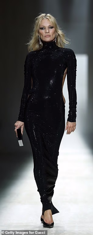 Supermodel Kate (52) osigurala je da će sve oči biti uprte u nju dok je izlazila na pistu u haljini bez leđa koja je padala toliko nisko da je bljesnula na njenim tangama.