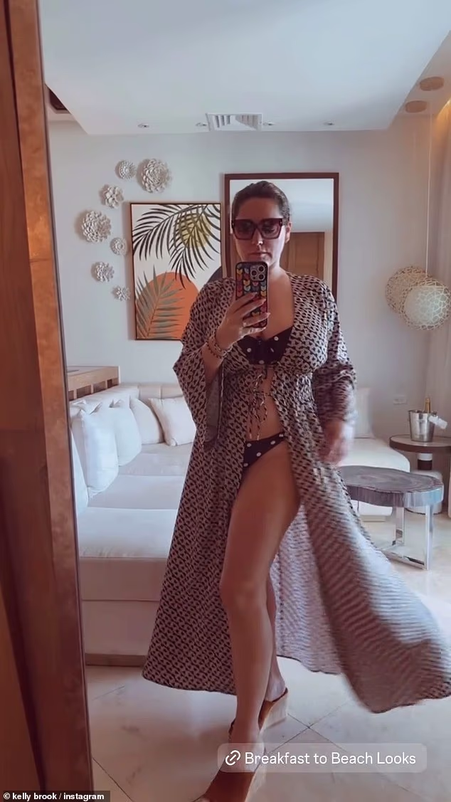 Kelly je odjenula lepršavi kimono preko sićušnog dvodijelnog kimona i zaštitila je oči šik sjenilima prije nego što je otišla na plažu.