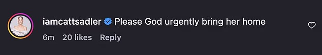Catt Sadler je napisala: ‘Molim te, Bože, hitno je dovedi kući.’