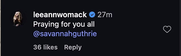 Ryan Seacrest također je bio među onima koji su iskazivali ljubav prema Guthrie, napisavši u komentarima: ‘Vratite je kući. Ti i tvoja obitelj ste u mojim molitvama.’