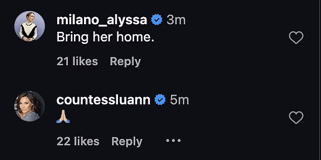 Milano je jednostavno napisao: ‘Vratite je kući.’ Chenoweth je dodala da se ‘molila’.