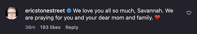 Zvijezda Moderne obitelji Eric Stonestreet napisao je: ‘Sve te jako volimo, Savannah. Molimo za tebe i tvoju dragu mamu i obitelj.’