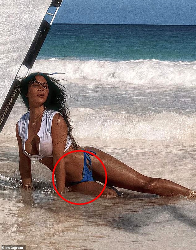 Kim Kardashian pojavila se na Instagramu ovog četvrtka kako bi modelirala više komada iz svoje najnovije kolekcije Skims Swim i optužena je za Photoshop Fail