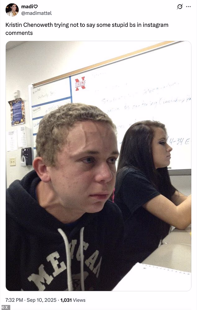 Ljepotica rođena u Oklahomi izrazila je tugu na Instagramu nakon što je Kirk ubijen na Sveučilištu Utah Valley 10. rujna.