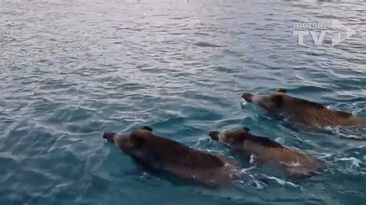 MALI LOŠINJ – Nesvakidašnje scene stižu nam iz Malog Lošinja; snimka na kojoj veliko krdo divljih svinja pliva u more širi se društvenim mrežama.