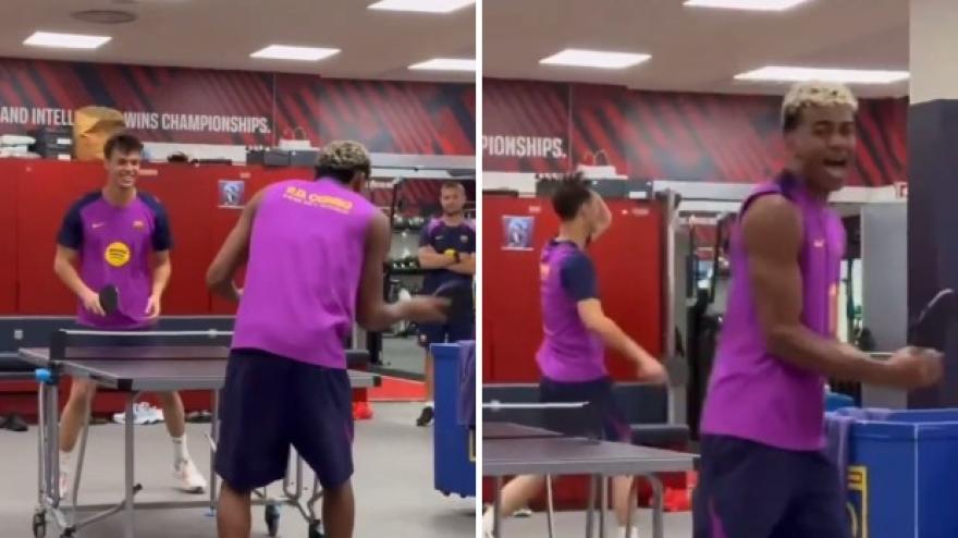 Zvijezda Barcelone Lamine Yamal igra stolni tenis s vratarom Barcelone Atletica Diegom Kochenom. Napadač Blaugrane ne promašuje niti jedan udarac i gromoglasno slavi!