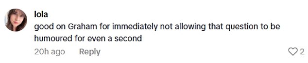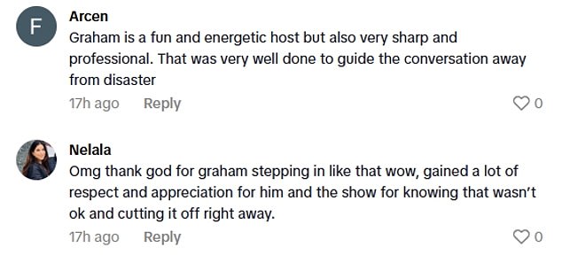 Korisnici Tiktoka brzo su hvalili Grahamove glatke vještine hostinga, istovremeno izravnavajući kritike prema Jodieinom navodnom pitanju
