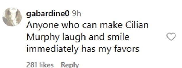 ‘To je dalo Cillian Murphy Life’; “Svatko tko može nasmijati Cillian Murphy i nasmiješiti se odmah moje naklonosti ‘; ‘On’ nacionalno blago ‘;