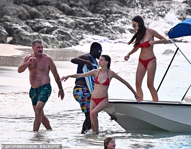 Očito dobrog raspoloženja, zvijezda Raya Donovana kasnije je viđena kako skija na vodi i upija karipsko sunce sa svojom djecom.