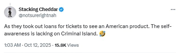 ‘Dok su uzimali zajmove za ulaznice da bi vidjeli američki proizvod. Samosvjesnost nedostaje na otoku zločinačkog otoka, “napisao je drugi, a napisali su australijsku povijest kao koloniju osuđenog.