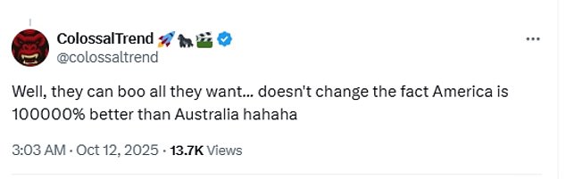 “Pa, oni mogu pojačati sve što žele … ne mijenja činjenicu da je Amerika 10000% bolja od Australije”, napisala je treća.