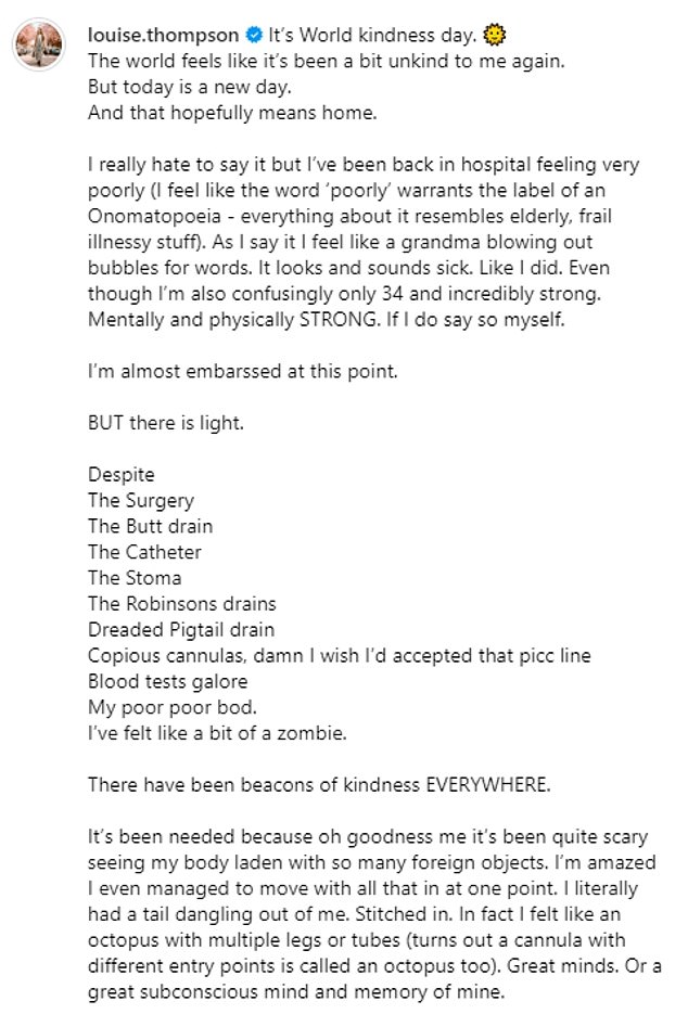 Louise je također objavila ažuriranje na Instagramu u srijedu, poručivši svojim pratiteljima: ‘Svijet se osjeća kao da je opet bio malo neljubazan prema meni.’