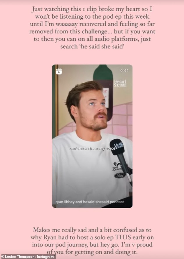 Ryan je nastavio s podcastom para He Said, She Said, no Louise je isječak ostavio slomljeno srce jer je priznala da sama ne bi slušala