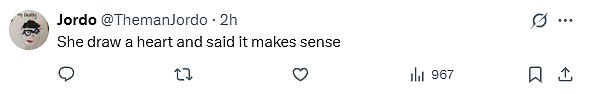Dok drugi vjeruju da je ona dijelila naklonost prema njemu, s korisnicima komentirajući: ‘Je li JoJo učinio 143? Volim te?!?!? “,” Ja sam srce vjerojatno “i” ona crta srce i rekla je da to ima smisla. “