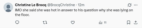 Uz daljnje vjerovanje, moglo bi se pojaviti jednostavnije objašnjenje: “IMO je rekla da je bila vruća u odgovoru na njegovo pitanje zašto je ležala na podu.”