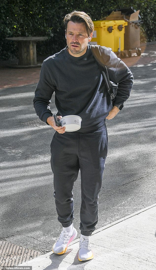Mark Wright, 38, prerezao je ležernu figuru u sivoj stazi dok je u petak stigao u studio u Manchesteru kako bi snimio Celebrity Special of Bullseye za nogometnu pomoć