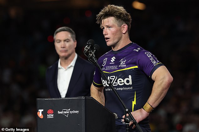 Walsh (desno) stavljen je na izvještaj zbog šokantnog punjenja na ramenu na zvijezdi Melbournea Xavier Coates (u sredini) tijekom Grand finala NRL -a u nedjelju