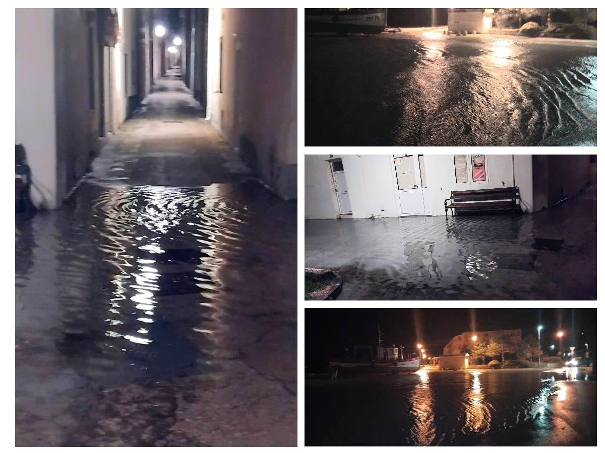 Nakon dugo vremena poplavljena je šetnica uz park na Goliji, more je ulazilo u park i dolazilo do prolaza između kuća i parka, na Katinama je more prešlo obalni zid i došlo je do kuća. Prema Macelu poplava za vrijeme plime nije čudo, ali ovog puta more je došlo do