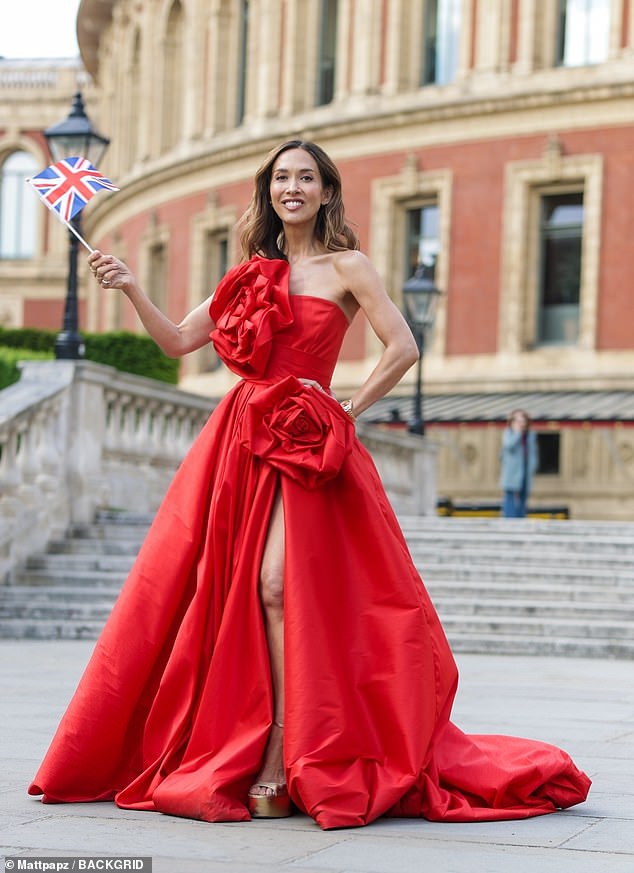 Myleene Klass, 47, odigrala je glamur u elegantnoj crvenoj haljini dok je u četvrtak vodila zvijezde slaveći 80. obljetnicu VE Dana