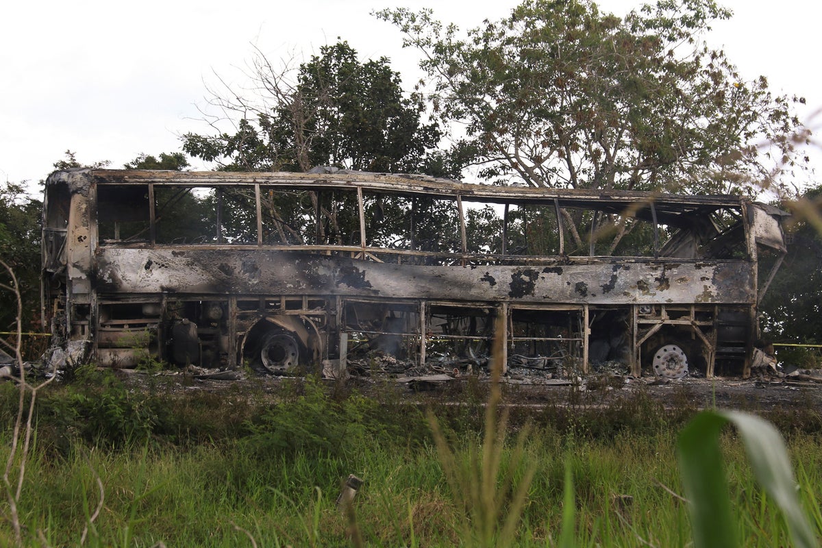 Autobus se zapalio i potpuno je zaokupljen plamenom, a slike s mjesta pokazale su samo metalni okvir vozila nakon sudara.