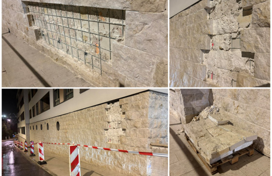 Na spornom zidu uz nogostup, na koji građani već dulje vrijeme upozoravaju tvrdeći da je izašao iz gabarita prijašnje građevine za koju je izdana dozvola za rekonstrukciju, uklonjen je dio kamena, odnosno kamenih obloga. Istodobno je nogostup uz taj dio gradilišta ograđen, što upućuje na to da će se zahvati na toj lokaciji nastaviti.