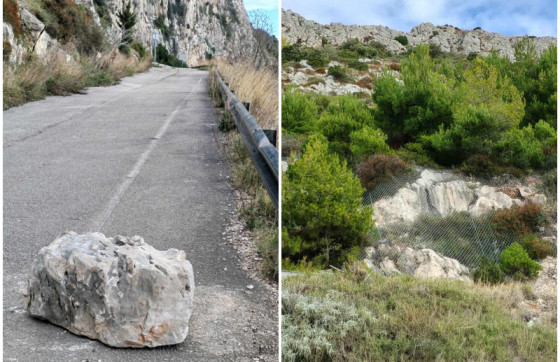 Kao dokaz svojih tvrdnji čitatelji su nam poslali fotografiju velikog kamena snimljenu na spomenutoj cesti, nakon čega smo i mi obišli tu skoro zaboravljenu cestu i uvjerili se da tamo ima više kamenih gromada koje smo dijelom i snimili. Dio tih snimaka poslali smo i Upravi državnog poduzeća Hrvatske ceste d.d., poprativši ih novinarskim upitom kad se poviše kolnika državne ceste D-8, na dionici ispod padina Srđa, može očekivati postavljanje puno jačih čeličnih mreža koje mogu zaustaviti i veliko kamenje, na sličan naačin kao što je to riješeno nadomak Orebića, na prijevoju Kapetani na Pelješcu.