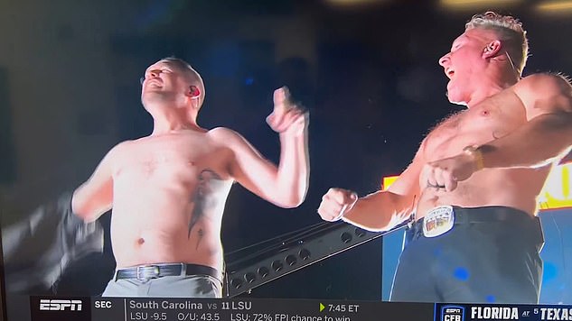 Međutim, tu se nije zaustavilo. McAfee je skinuo košulju i Lanning je brzo slijedio odijelo, na zadovoljstvo gomile.