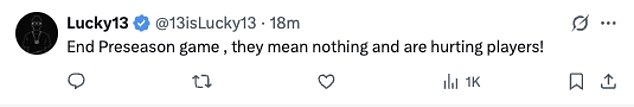 Drugi navijač zahtijevao je NFL ‘kraj predsezonske igre’ jer “ne znače ništa i ne povređuju igrače”.