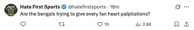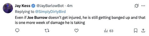 Navijač je objavio: “Čak i ako se Joe Burrow ne ozlijedi, još uvijek se udara i to je još jedan tjedan štete koju uzima”.