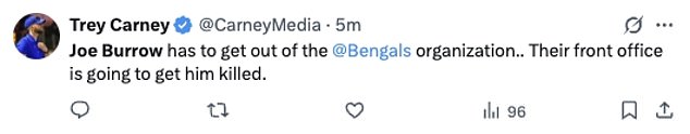 Drugi je komentirao: ‘Joe Burrow mora izaći iz organizacije @bengals. Njihov prednji ured će ga ubiti. “
