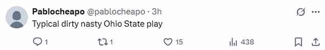 ‘Tipična prljavo gadna igra Ohio Statea’, komentirao je drugi kritičar.