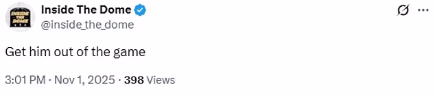 Još jedan bijesni gledatelj zatražio je potpuno uklanjanje Downsa s terena, napisavši: ‘Izbacite ga iz igre’.