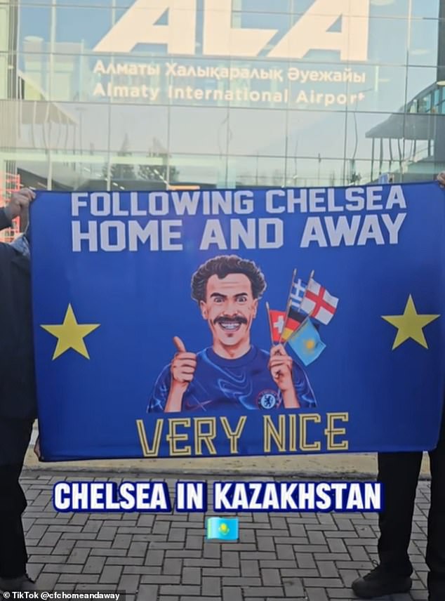 Podijelite ili komentirajte ovaj članak: Navijačima Chelseaja policija je u Kazahstanu oduzela zastavu Borat uoči 3-1 pobjede nad Astanom