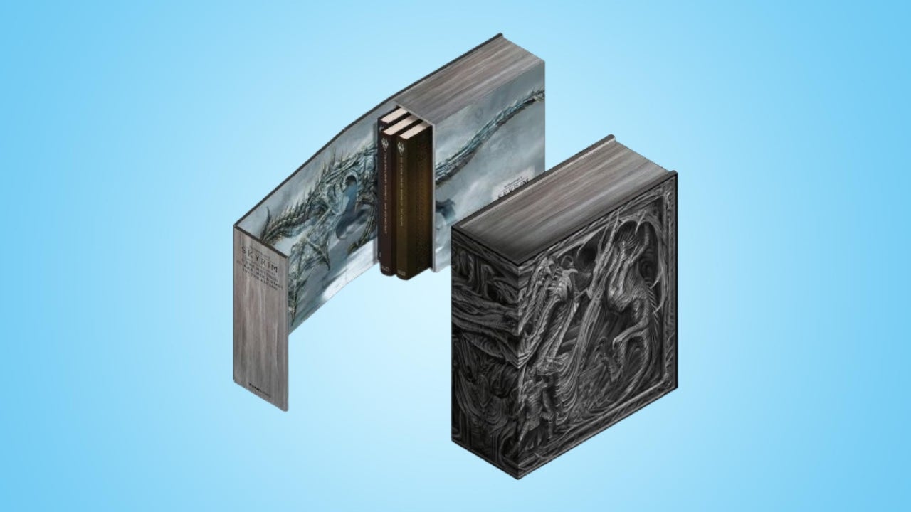 Izvorno objavljena 2017. godine po 110,00 USD, ova Skyrim knjižnica okuplja raskošne sveske – I: Povijesti, II: Man, Mer & Beast i III: Arcane – u luksuznu klizavu pasuću koja se može izložiti samostalno ili u vašem većem asortimanu domaćeg doma kod kuće.