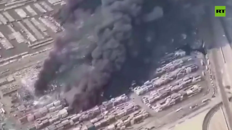 Eksplozija je očito zapalila teretne kontejnere pohranjene u luci, jer drugi video prikazuje veliki zid debelog crnog dima iznad zaliha.